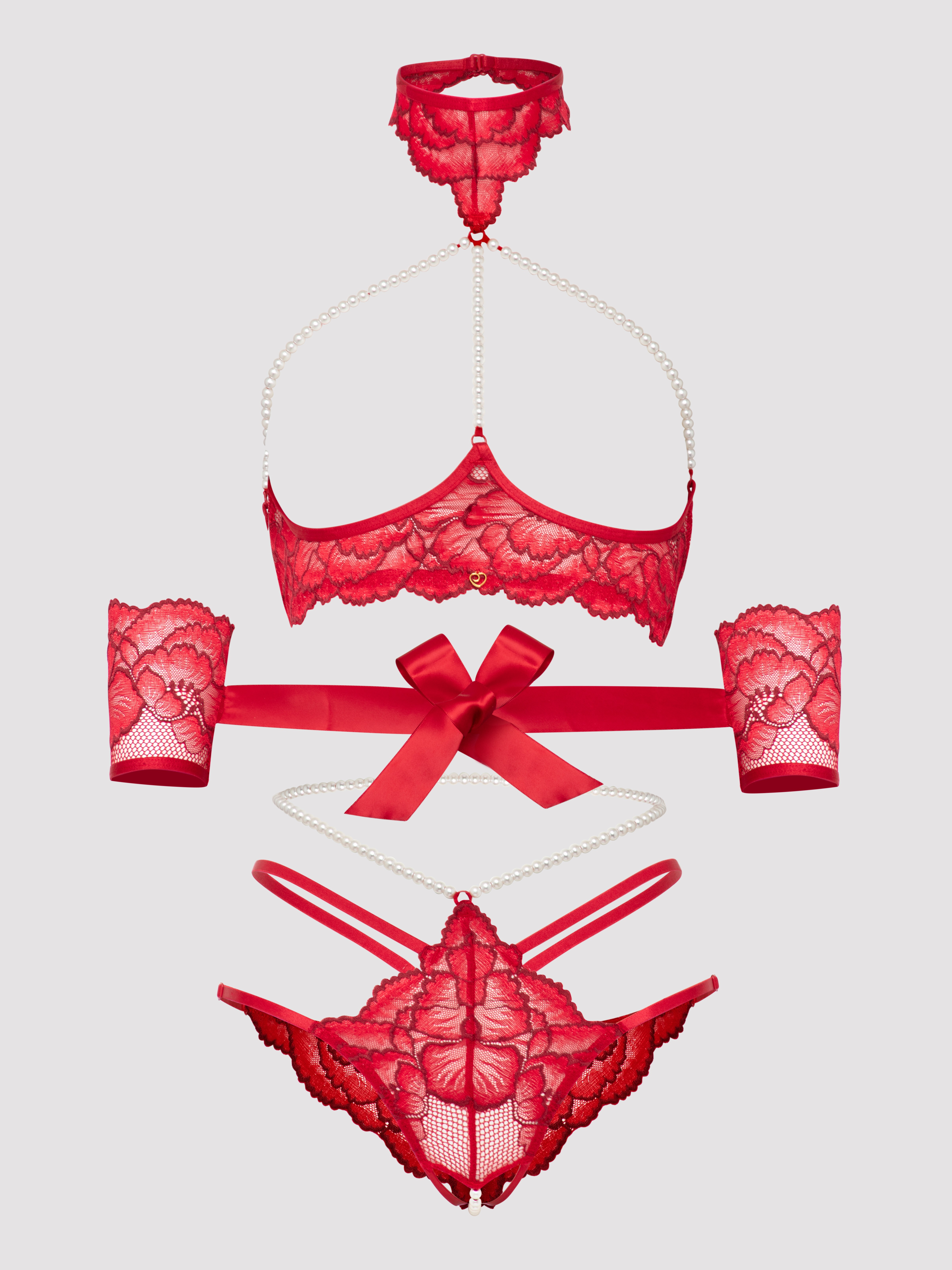 Lovehoney Tiger Lily Red Floral Lace Open-Cup Bra Set