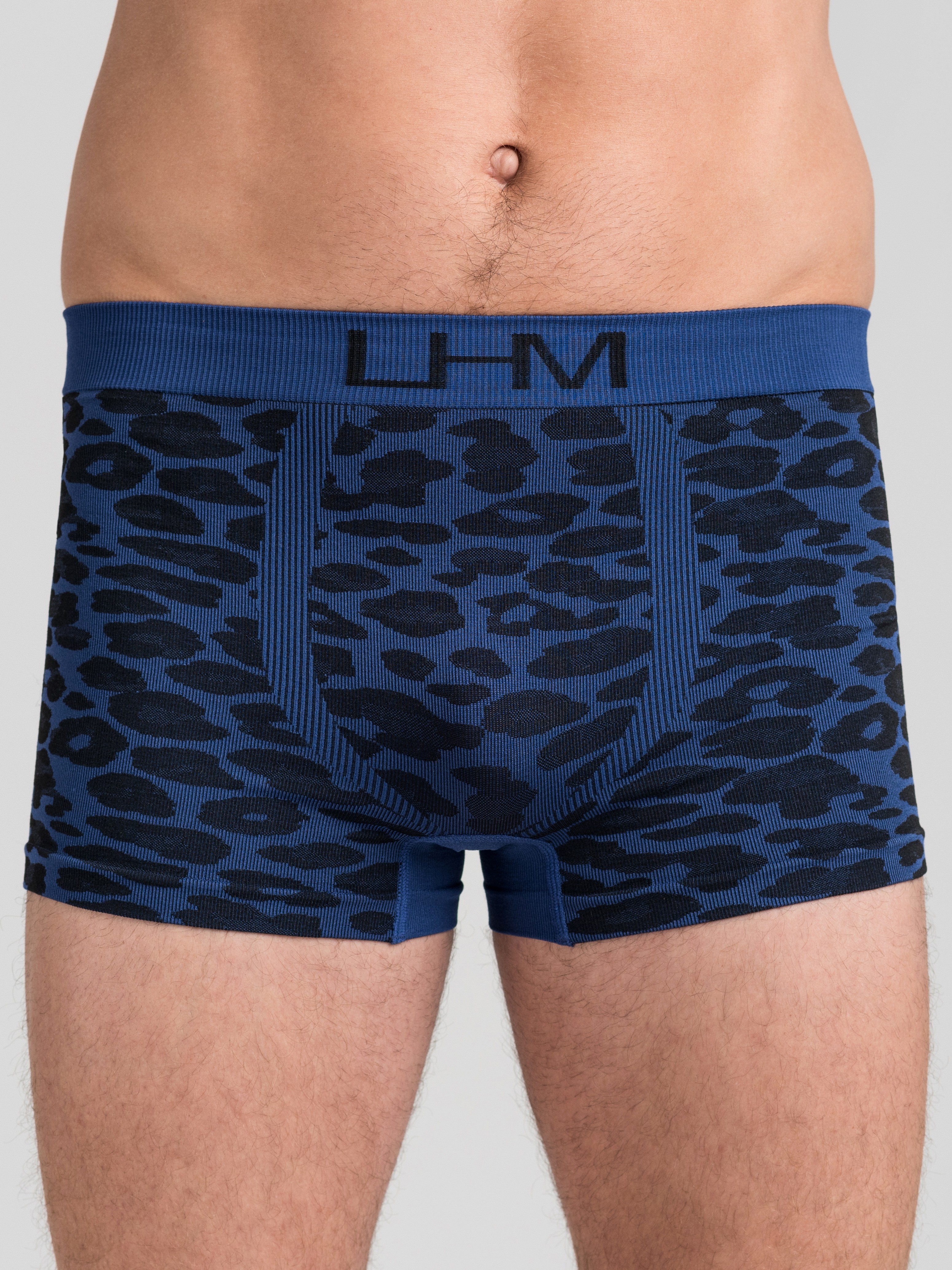 • Seamless, figure-hugging blue leopard print men's boxer shorts for ultra-sexy comfort
