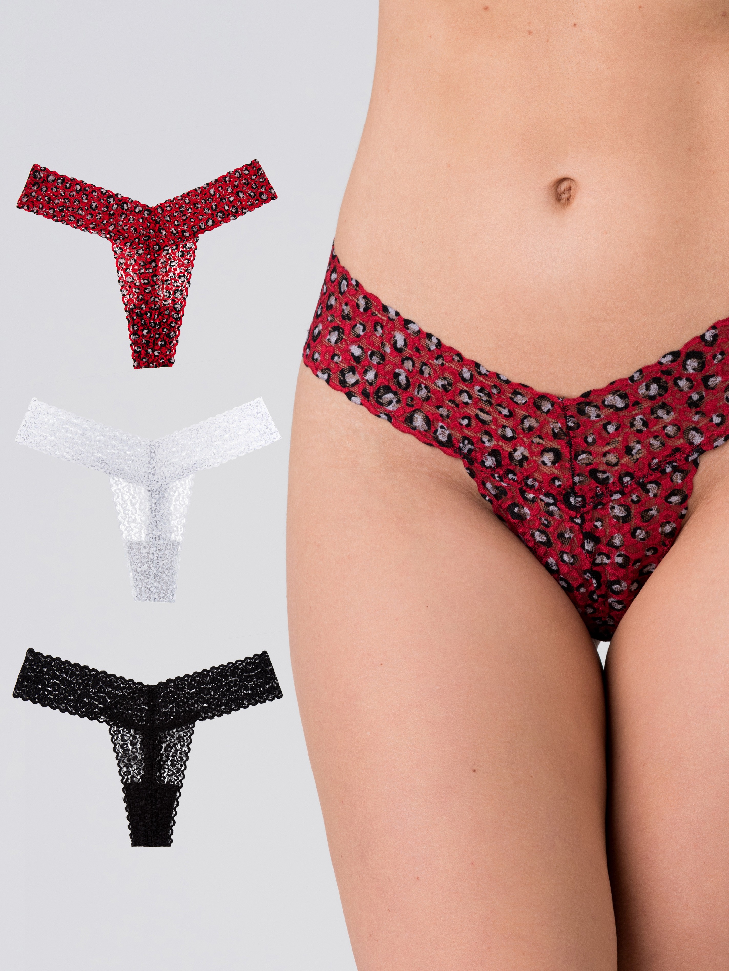 - Three lace thongs for booty-baring beauty