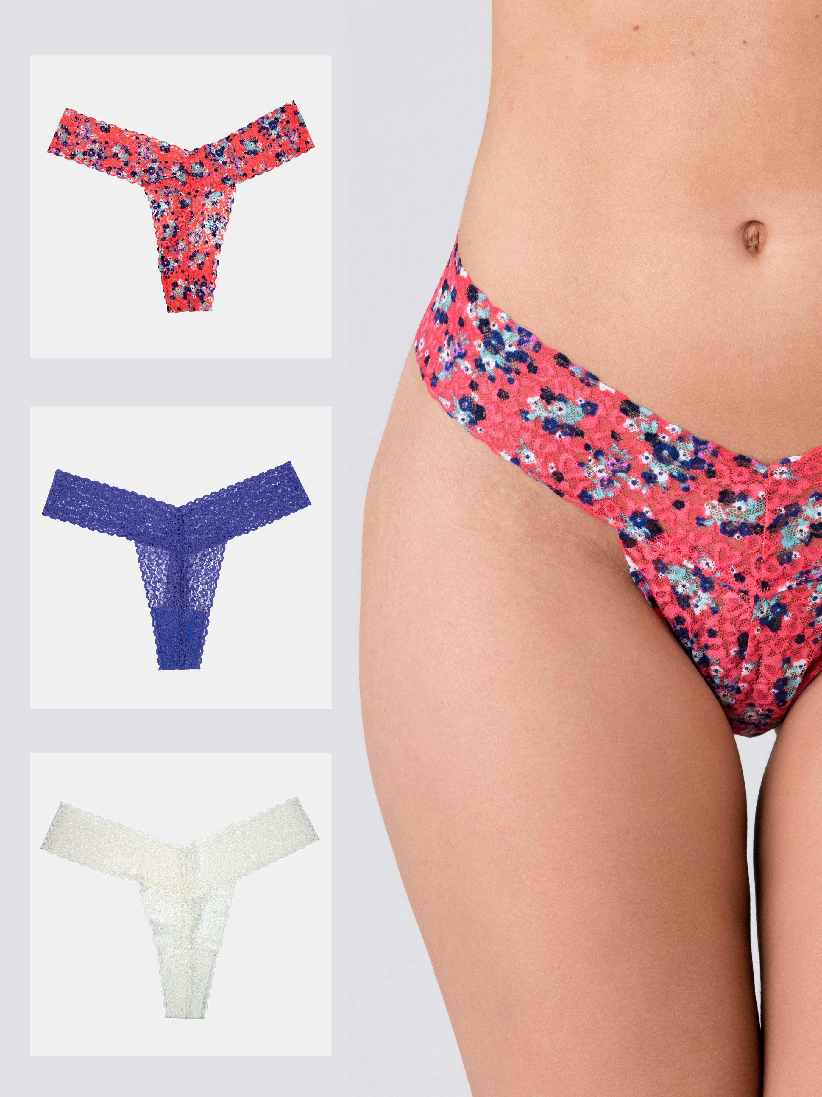 - Three lace thongs for booty-baring beauty