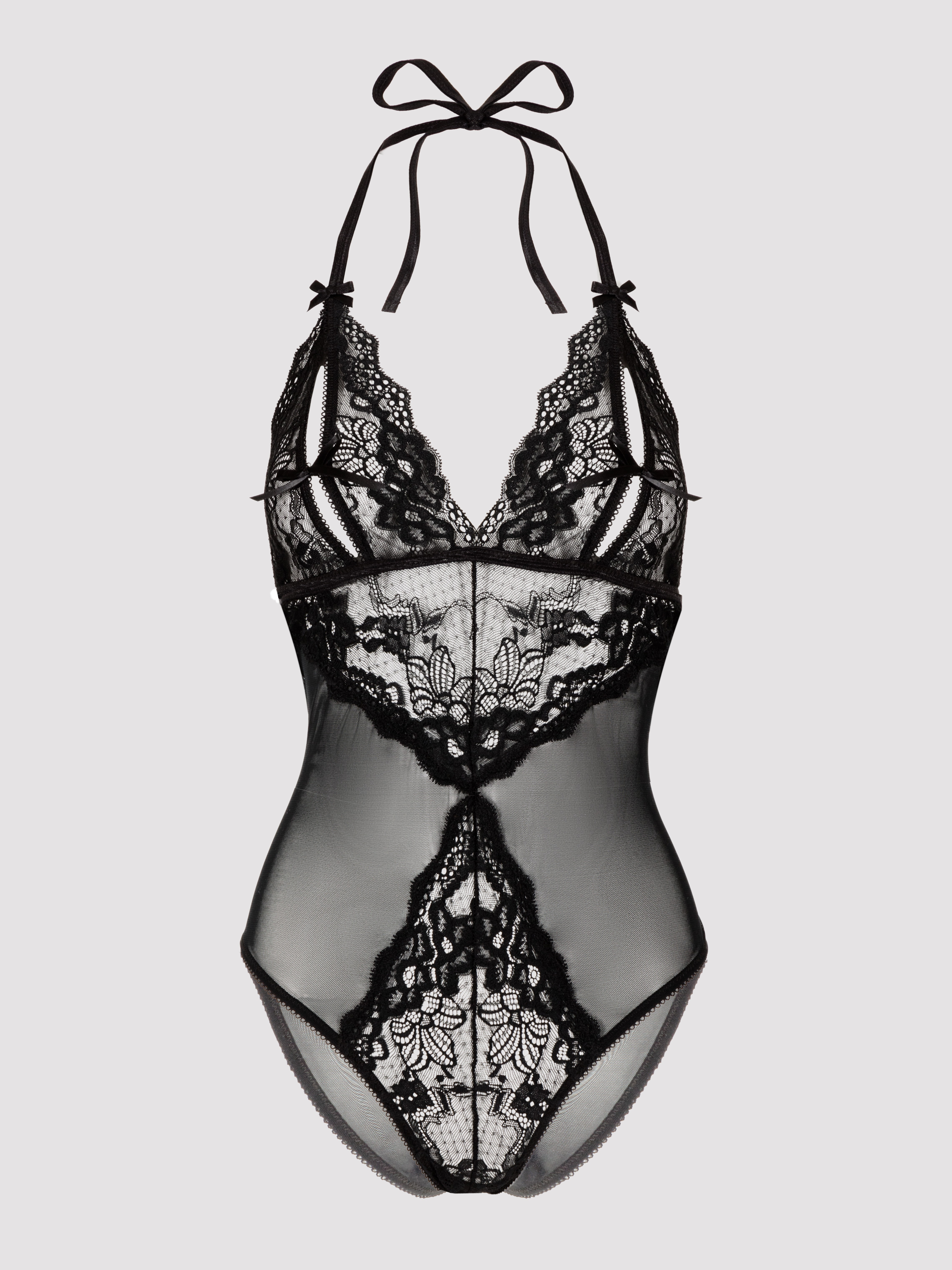 - Lace and sheer mesh body for a jaw-dropping boudoir look