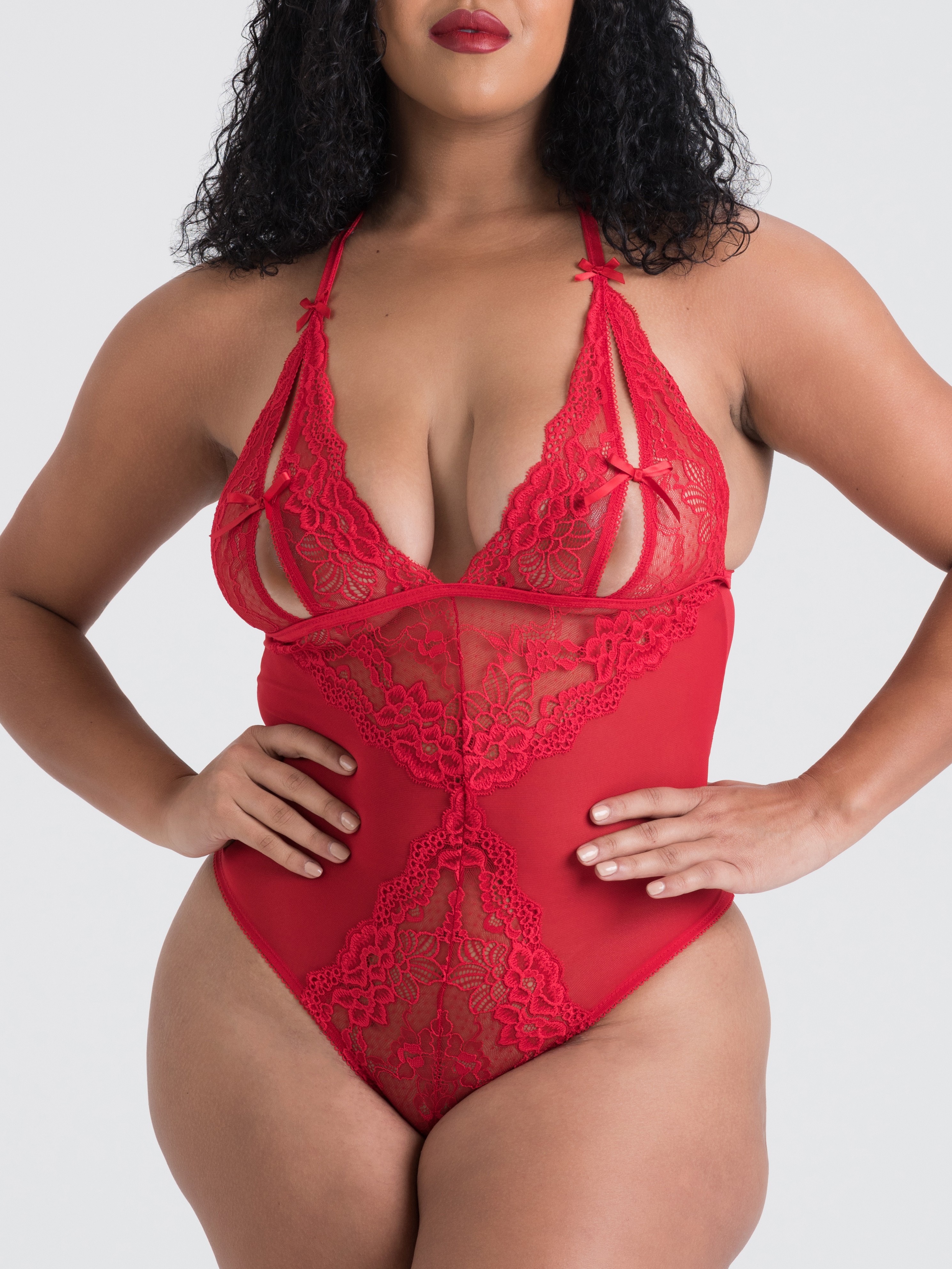 Lovehoney Plus Size Peek-a-Boo Red Lace Body