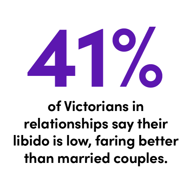 The research shows that across Victoria, more than half (55%) of adults say they experience low libido, and relationship status plays a big role:
