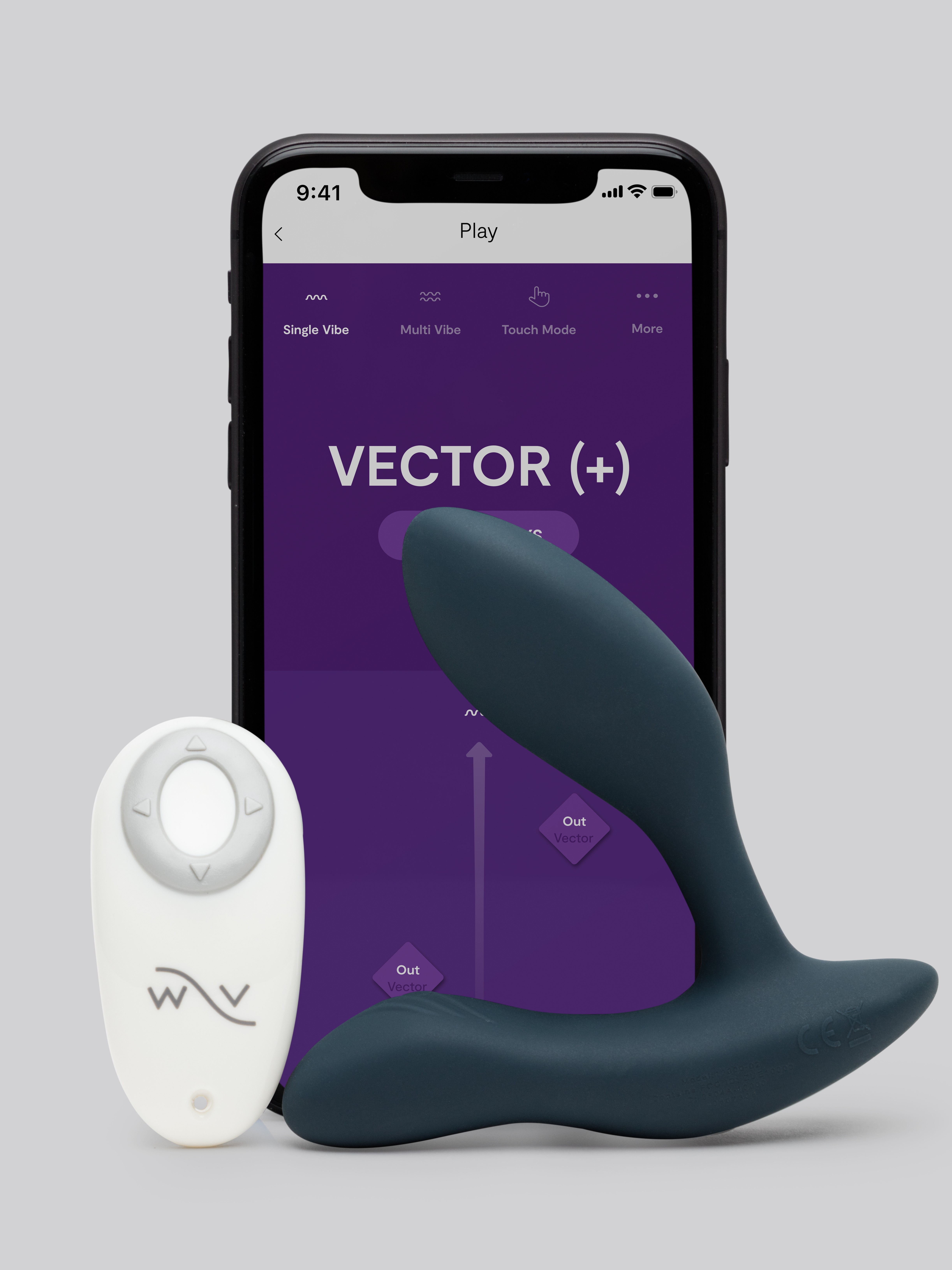 Vector comes with a remote control but can also be controlled by the button on its base. Or... you can use the free We-Vibe™ app to shrink the distance between you and a faraway lover.