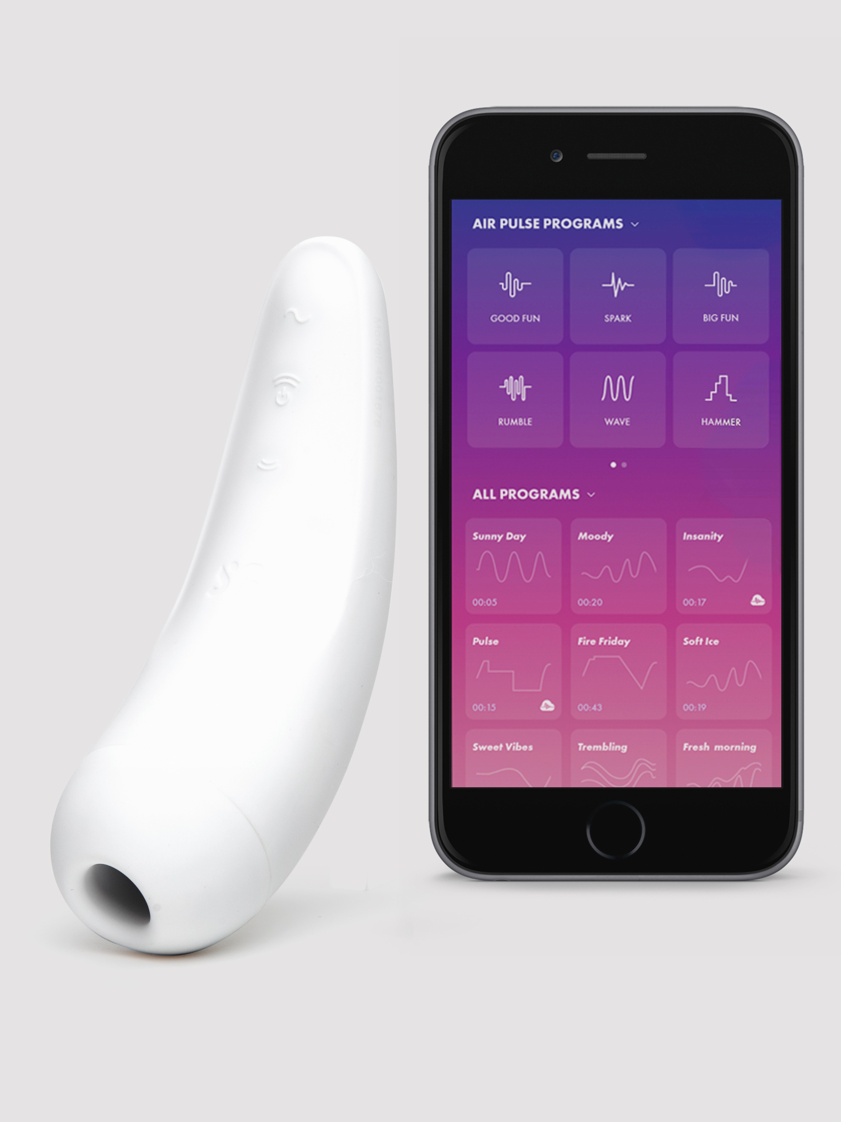 You can play with your Curvy 2+ via the free Satisfyer Connect app, turning your phone into a remote control and unlocking an infinite range of modes.