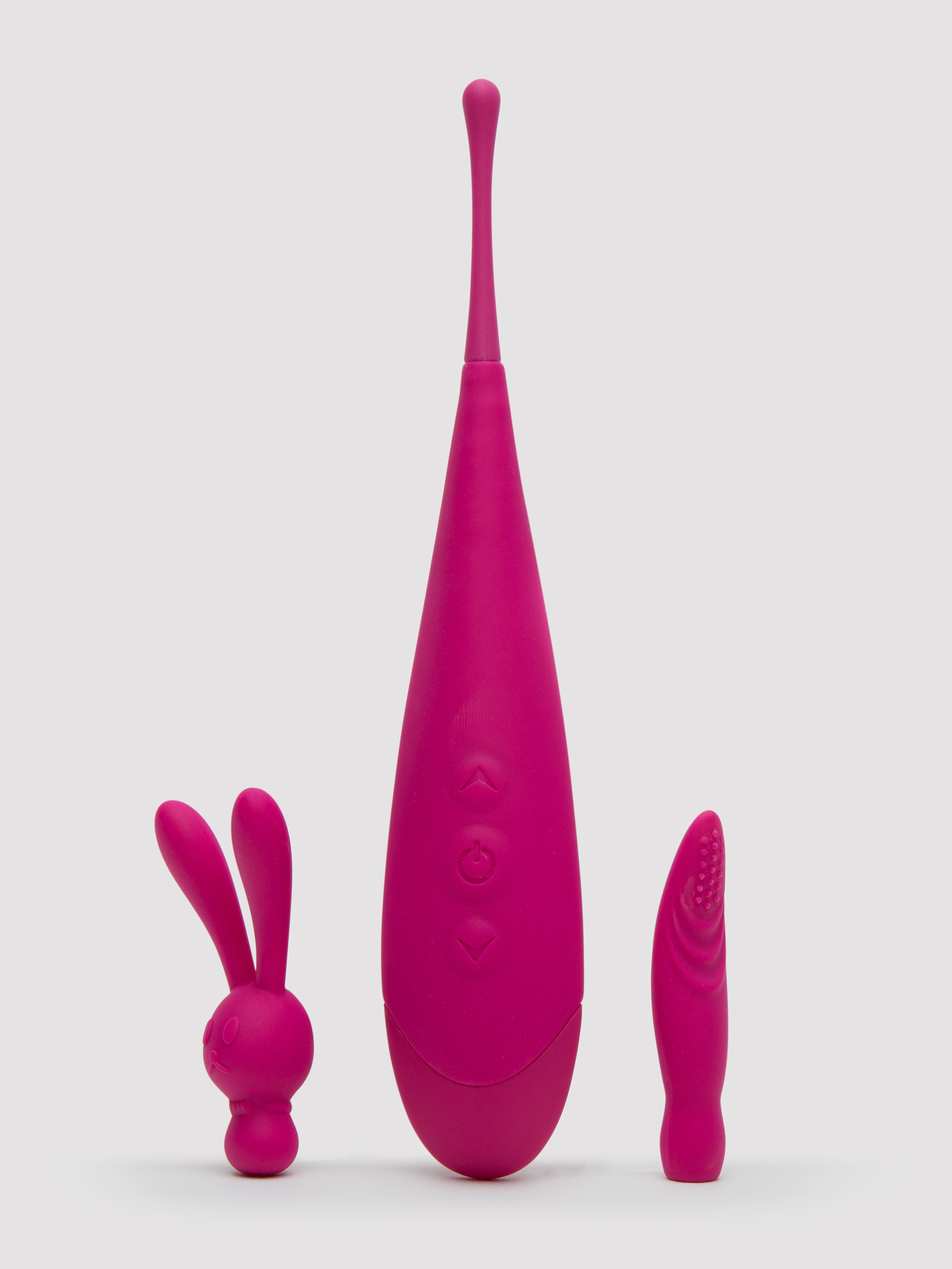 Enjoy Quiver in all its naked glory with its standard tip, or try one of the two additional silicone tips for other exciting sensations. Use the bunny head to diffuse vibrations on other sensitive spots like nipples, clitorises or frenulums, and try out the textured head for added rub.